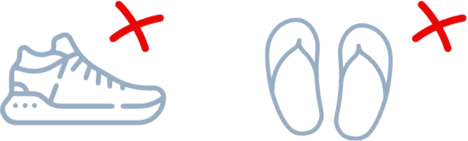 Por favor, usad calzado apropiado. Aunque las zapatillas elegantes pueden ser aceptables, no permitimos el uso de calzado excesivamente casual o atlético, como chanclas y sandalias de playa.